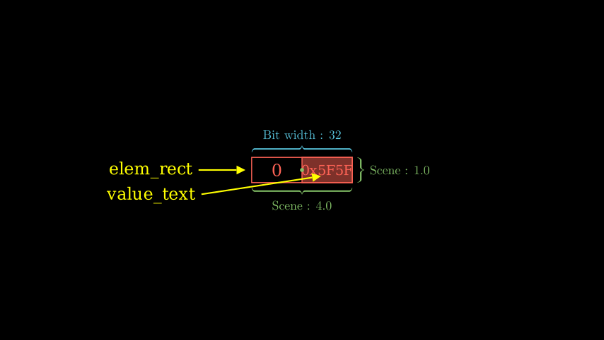 - The width of elem_rect presents the bit width of the register.
